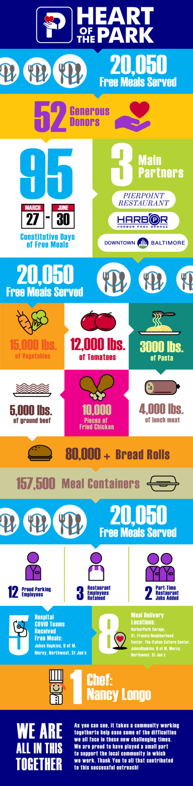 BALTIMORE, Maryland – Heart of the Park, the free meal giveaway created to meet community needs that emerged due to the COVID-19 pandemic and its economic fallout, served its last meal on June 30, 2020. The program, which began in late March and overall, served over 20,000 to Baltimoreans in need and those on the front lines.