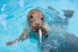 Our Animal Rescue and Animal Health teams continue to care for a juvenile grey seal nicknamed Luna and a male harbor seal nicknamed Phil. They’re both showing signs of improvement in their overall health!