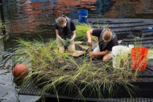 A floating wetland prototype that mimics a natural tidal salt marsh habitat has been installed between Piers 3 and 4! This prototype is the next step in our plan to revitalize Baltimore’s Inner Harbor through our Waterfront Campus, which will reintroduce wetland habitats for native species and provide local students with a living classroom.