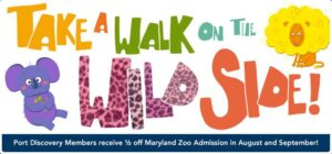 Port Discovery members receive half off admission to the Maryland Zoo during the months of August and September! Explore the zoo this Summer and learn about wildlife for only a fraction of the cost! Not a member yet? Become a Port Discovery member to enjoy exclusive savings at the Maryland Zoo and other special offers, too!